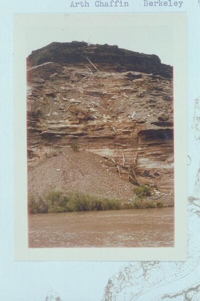 Castle Butte, left bank, mile 151, Glen Canyon. "Glen Canon. Upper rock, except one butte, eroded and gone several miles back from the river."