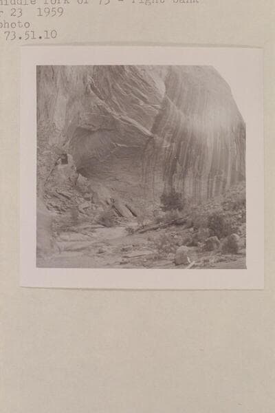 View into middle fork of 73 from trail into southwest fork. The cave at right was located as one of the prehistoric sites