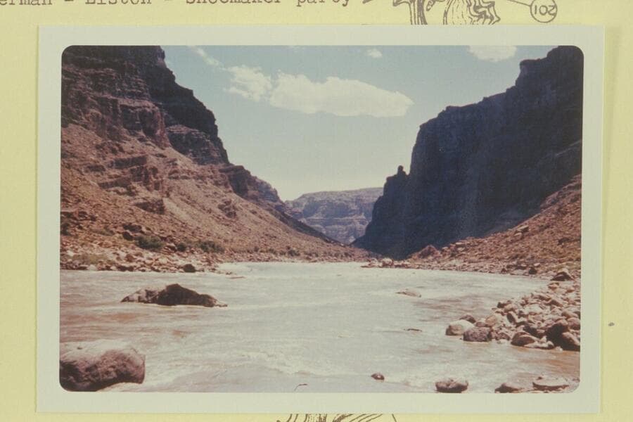 Down in One Mile Rapid from approximately Mile 204 1/2. The point of loss of the No. 1 boat of the Best Expedition on July 21, 1891