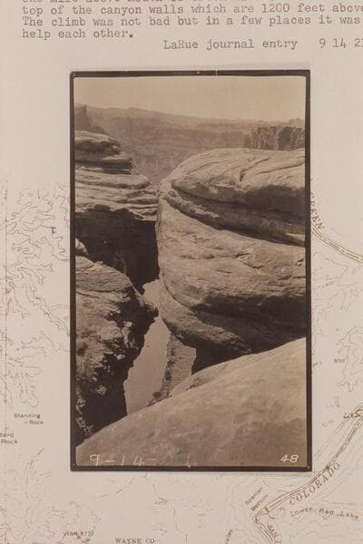 Upstream on Canyon of the Colorado River from rim one mile below the mouth of the Green River. ; Down Canyon of the Colorado from point on rim one mile below the mouth of Green River
