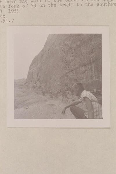 Chris Turner near the wall of the butte at the edge of the middle fork of 73 on the trail to the southwest fork