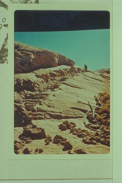 Steps on Schock Trail, Shock Bar, Glen Canyon. Lucy Arnold on steps