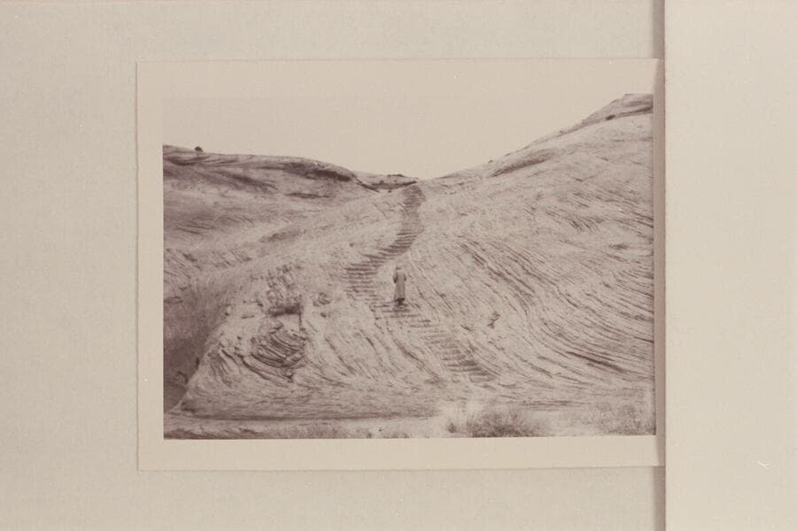 Inscription on huge rock in high cave west of Schock Trail, near Mile 111, north bank