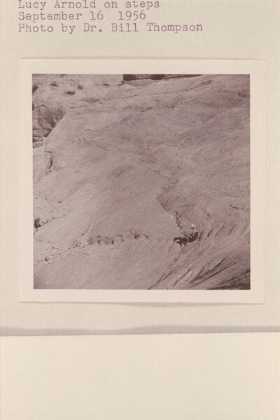 Steps on Schock Trail, Shock Bar, Glen Canyon. Lucy Arnold on steps