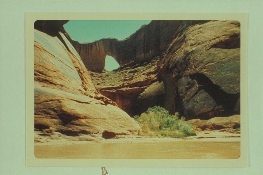 Stevens Canyon (Skyline) Arch. At the bottom of the print is the mouth of Stevens Creek. At upper left is the mouth of Coyote Gulch