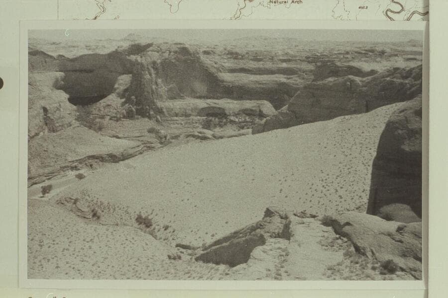 Route of descent into Escalante River. First stage of descent to sand. Dave Rust party