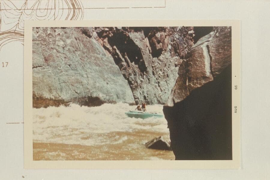 Jack Brennan driving boat through Cisco Bend; Westwater Canyon