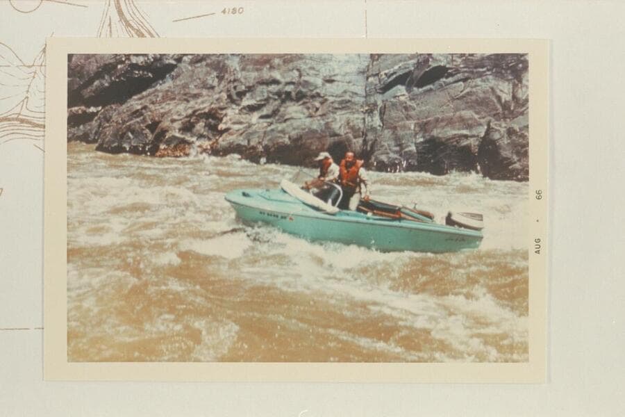Jack Brennan driving boat through Cisco Bend; Westwater Canyon