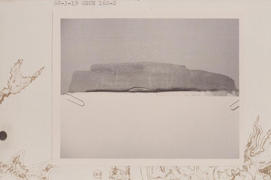 Inscription "Julie Julian" on rock slab from Fort at Hite and found Sept. 1967 by Mrs. Bob Dechert