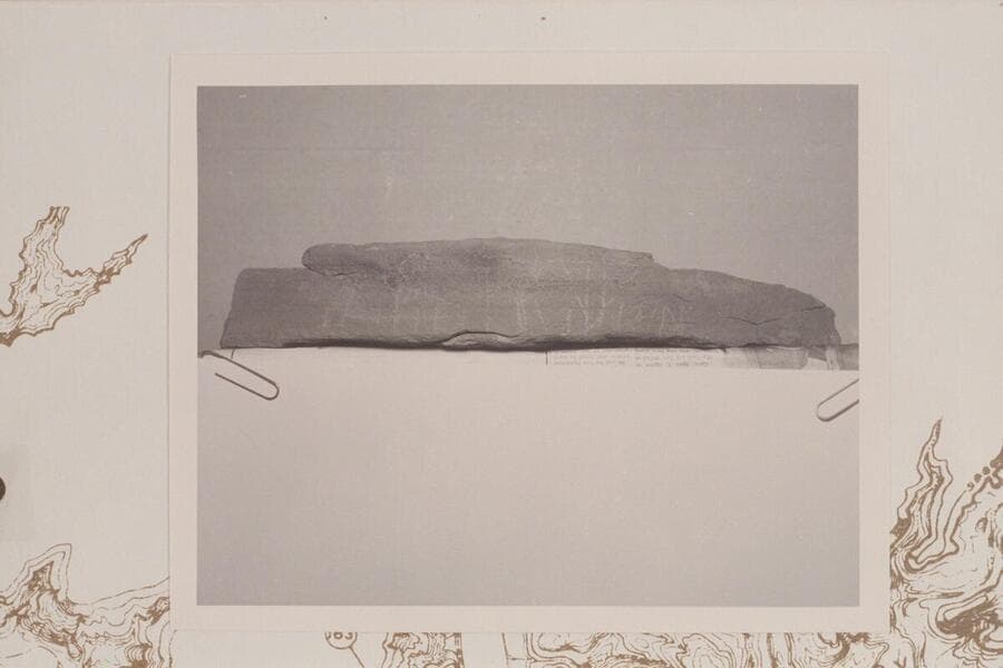 Inscription "Julie Julian" on rock slab from Fort at Hite and found Sept. 1967 by Mrs. Bob Dechert