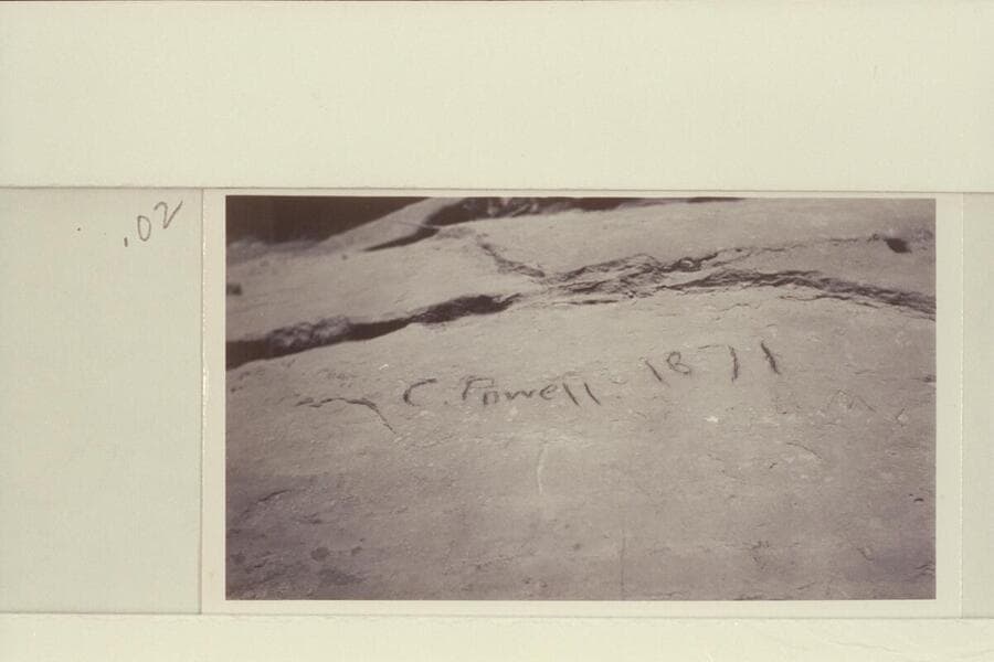 ![Names of the second Powell crew cut inside the Music Temple [on photo reverse: Mile 75 1/2 (Glen Canyon) inscriptions in Music Temple]](/_next/image?url=https%3A%2F%2Frail.huntington.org%2FIIIF3%2FImage%2F22APN4ICOE70%2Ffull%2F%5E360%2C%2F0%2Fdefault.jpg&w=750&q=75)