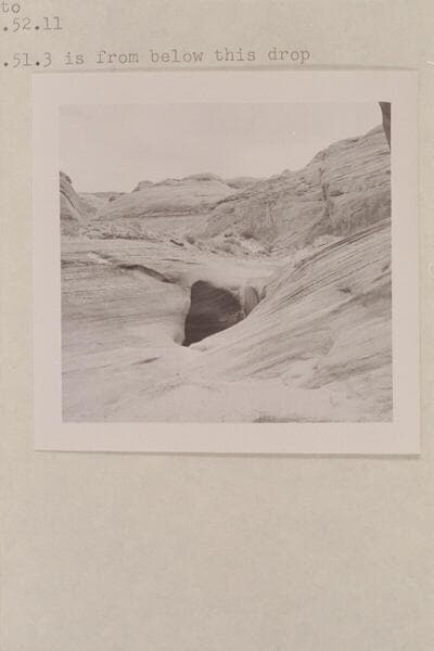Small drop of about 5 ft. in bottom of southwest fork of 73.6 below point of trail entry. 599 GNN 73.51.3 is taken from below point of trail entry