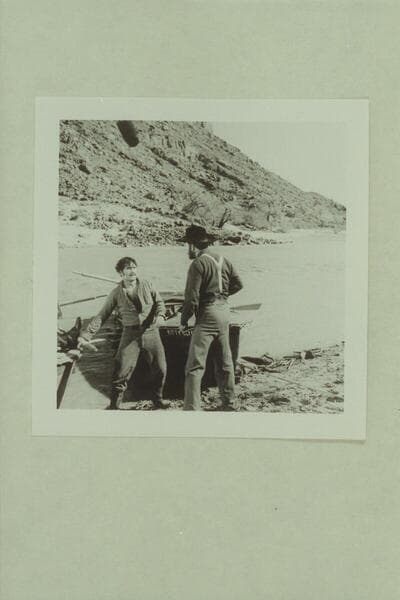 Disney filming of "The Colorado River Story." John Beal as Major Powell. Jim Drury as Walter Powell. Colorado River above Moab