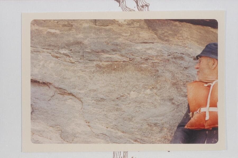 Dock Marston at the 1836 D Julien inscription in Cataract Canyon, Mile 185.75 left bank