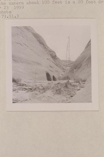 Up the water course of the southwest fork of 73. There are two small drops just beyond the holes in the wall. Back of the camera about 100 ft. is a 20-ft. drop