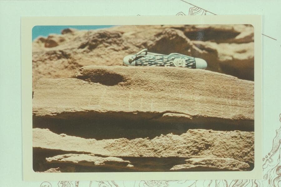 "Julie Julian" inscription on block from Fort at White Canyon near Hite. Removed to escape inundation
