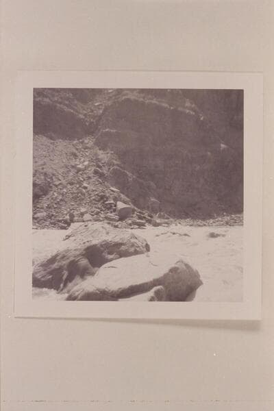 Harris-Brennan boat out of lower end of Rapid 22. The Sliced Boulder is just ahead of the boat