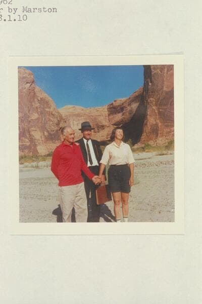 Harry Aleson, The Flying Bishop Bill Wells and Dorothy Keyes before the wedding in front of The Chapel