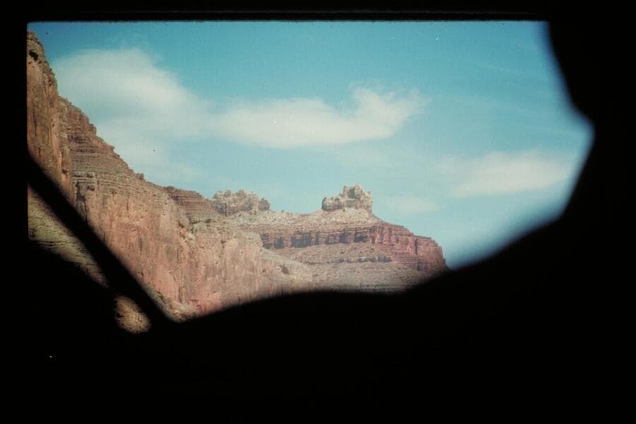 Up from camp at head of 217 Mile Rapid showing plane flying over