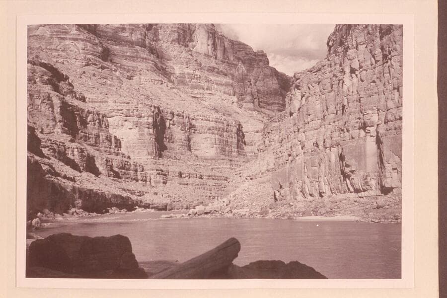 Looking from up in Dark Canyon down across Colorado River. Pathe-Bray party