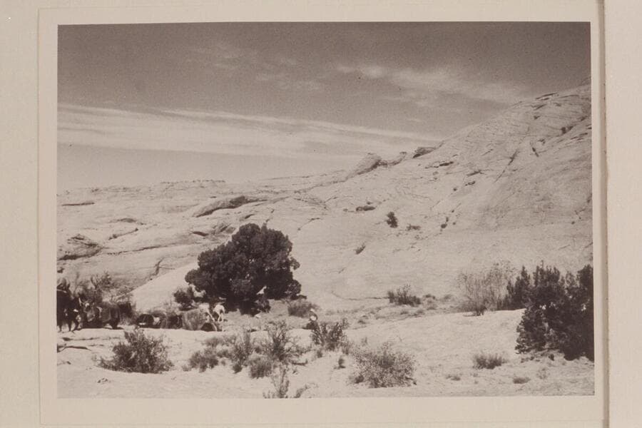 Across the northerly drainage into Lehi Creek to base camp of 1959. From Little Gray Mesa north of Lehi Canyon and east of the joint