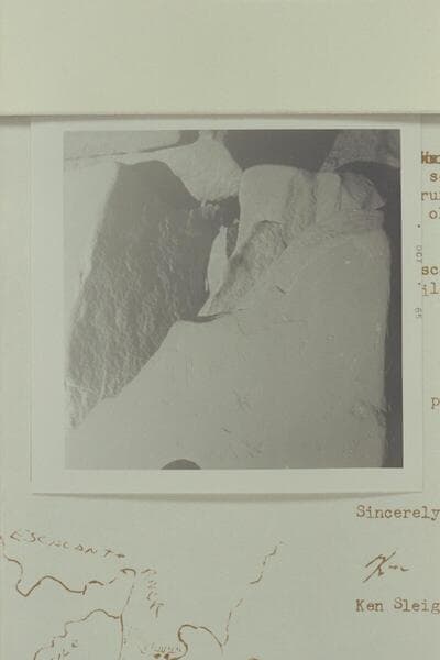 The "J. W. Black" name placed on a rock in a ruin to the left of the Aleson name which is on the wall within an old Moqui house. It is situated on the left bank of the Escalante, high in the alcoves of the wall; about 1 1/4 miles below 25 Mile Wash