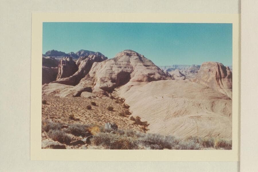Across 73 and down Glen Canyon from top of Black Brush Mesa; Butte is between northeast fork and middle fork