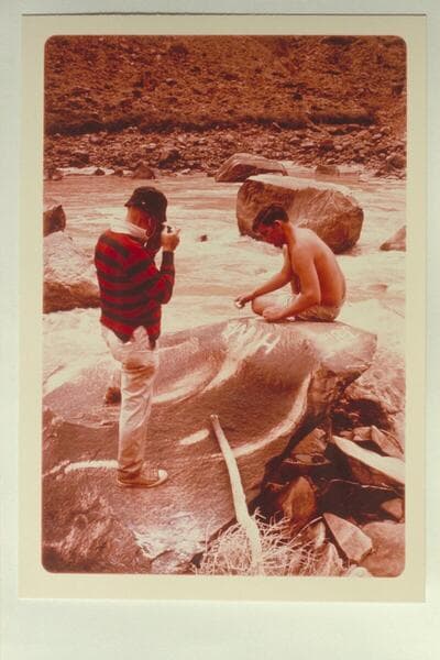 Dock Marston and Buzz Belknap check the Best and McDonald inscriptions at Rapid 16, Mile 204 1/2, Cataract Canyon