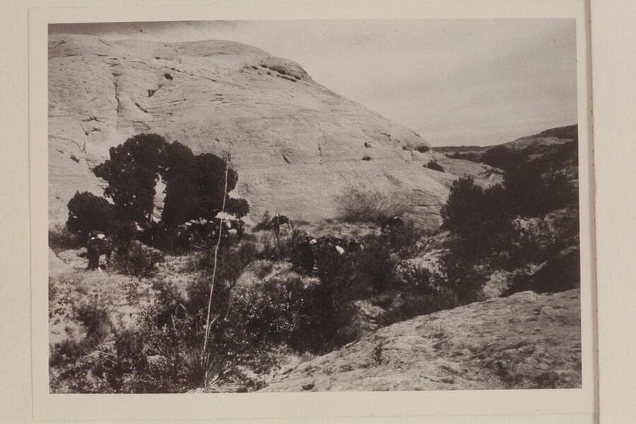 Across the northerly drainage into Lehi Creek to base camp of 1959. From Little Gray Mesa north of Lehi Canyon and east of the joint