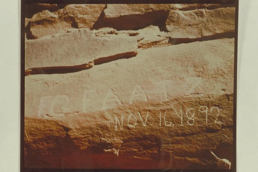 The name of P.A. Craig and the date Aug. 4, 1892 cut deeply into the wall at TSE AH TOH. Above the deep cutting is another cut of his name