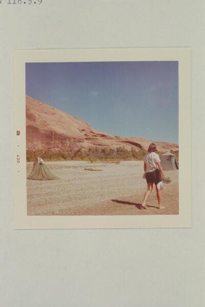 The bride, now Dorothy Aleson reverts to River togs after the ceremony. The Chapel, Mile 118.5, Glen Canyon