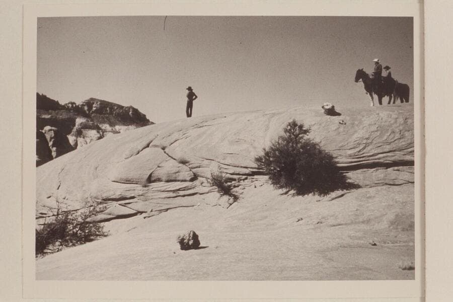Leading stock into northeast fork of Anasazi Canyon--Lehi Canyon