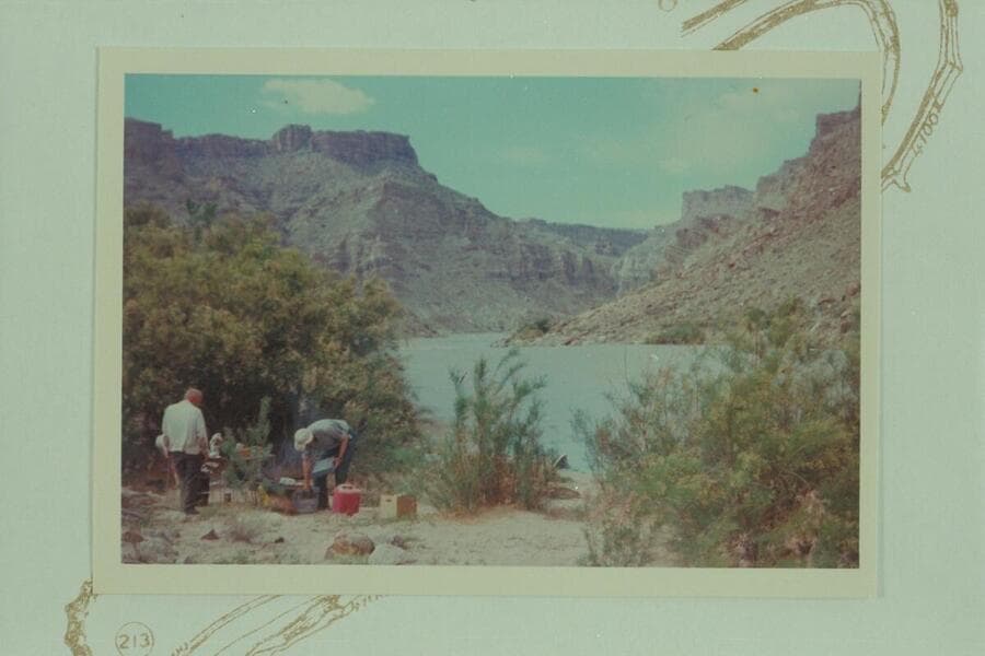 Ellsworth Kolb in USGS skiff in the Brown Betty Rapid, No. 1. The Brown Betty Rapid heads at Mile 212.3 and drops 4 ft. in .15 miles