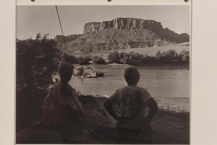 Margaret Marston and Gin Masland watch approach of the Chaffin Ferry at Hite
