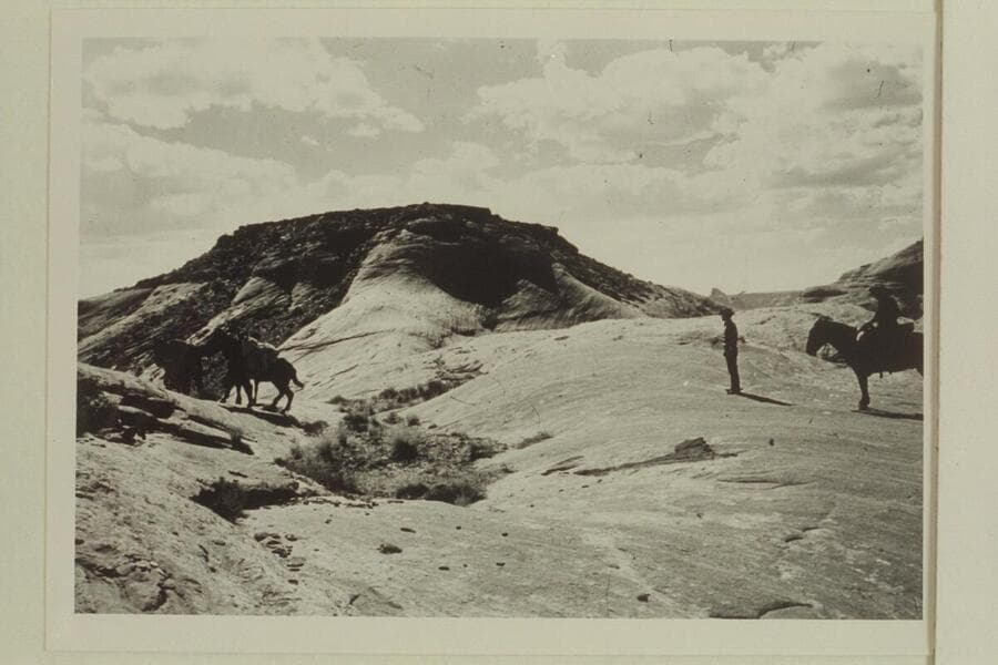 Route into Anasazi Canyon from the limit of travel with stock. From top of Little Gray Mesa