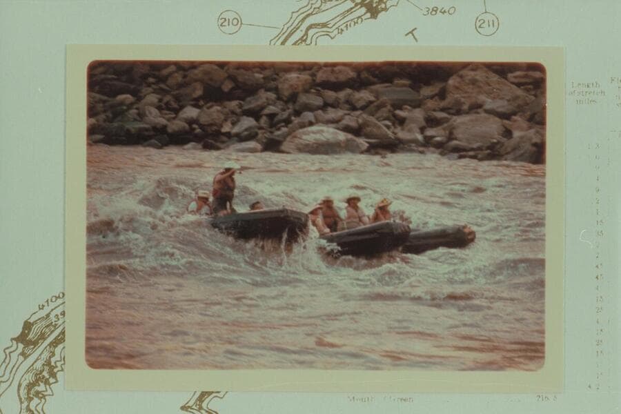 Ken Sleight's 3 10-man combination preparing to land at Waterhole Canyon from Mile 198.75