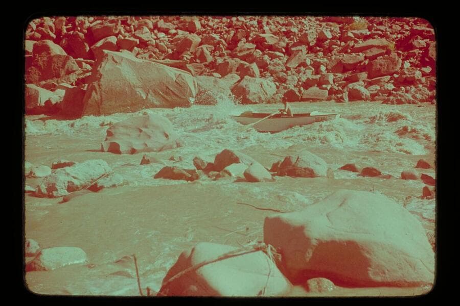 One of the Nevills punts in 13-ft. rapid. MH gauge: June 16: 8, 510. June 17: 8,890