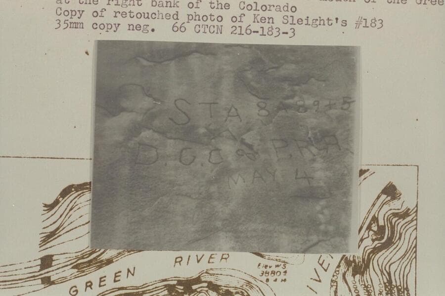 Brown-Stanton inscription at head of Cataract Canyon at right bank below the mouth of the Green River