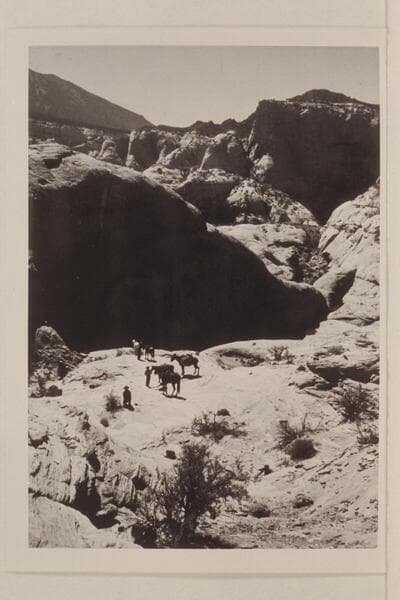 Head of one of the forks of the side canyon, Mile 73.6. Upper left is the side of Butte 6069. Arrow drawn to southwest fork