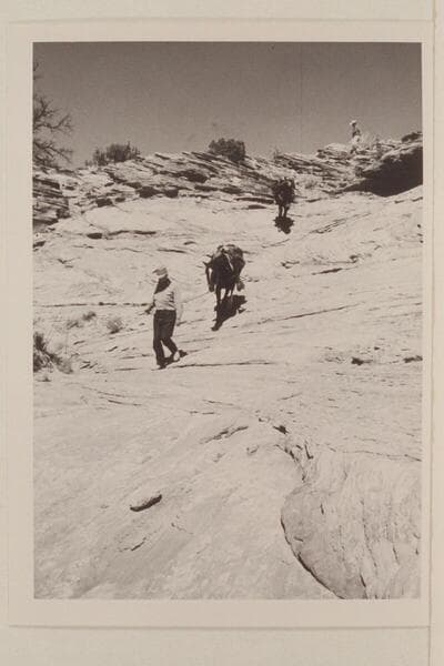 Leading stock into northeast fork of Anasazi Canyon--Lehi Canyon