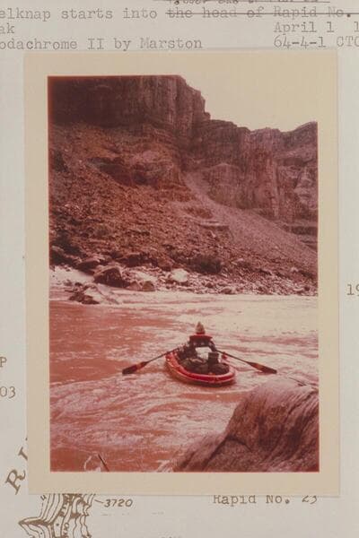 Bill Belknap prepares to portage his Sportyak at the head of Rapid 23. He comes in from the right