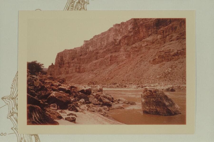 Across the head of Rapid No. 13 into Range Canyon. Mile 204.8. The Chenoweth-Hoyt table places the head of the rapid at Mile 205.0
