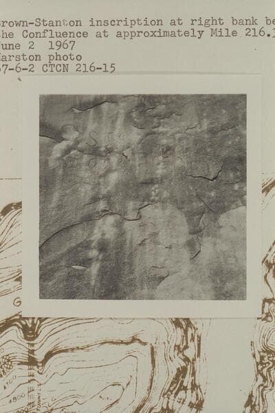 Brown-Stanton inscription at right bank below the confluence at approximately Mile 216.3