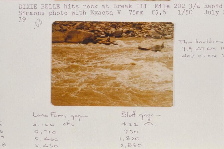 "Dixie Belle" hits rock at Break III, Mile 202 2/3 Rapid