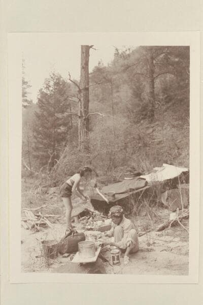 First camp on the Dolores River. Margaret Marston watches Becky Walker