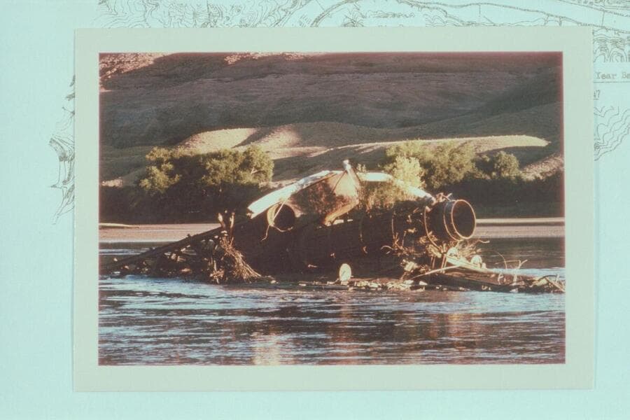 Hull of Hoskanini dredge. Under construction at Mile 121 in Glen Canyon