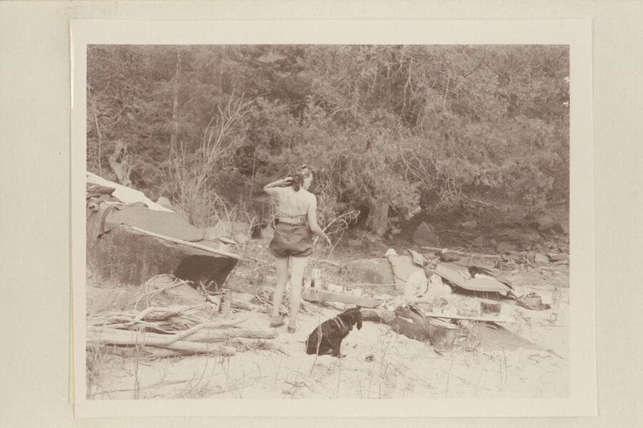 First camp on the Dolores River. Margaret Marston watches Becky Walker