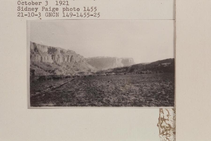 North 60 degrees W. from point just below mouth of Bridge Canyon on Colorado River. Wingate sandstone at river