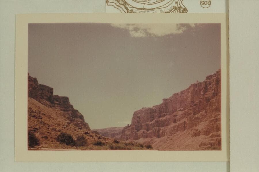 Down Cataract Canyon from the river at Mile 205.3. Range Canyon at Mile 205.1 is at right