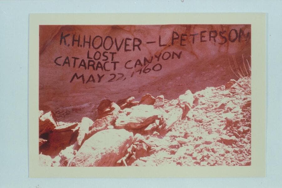 Painted memorial at the up-river side of Sheep Canyon, Mile 177